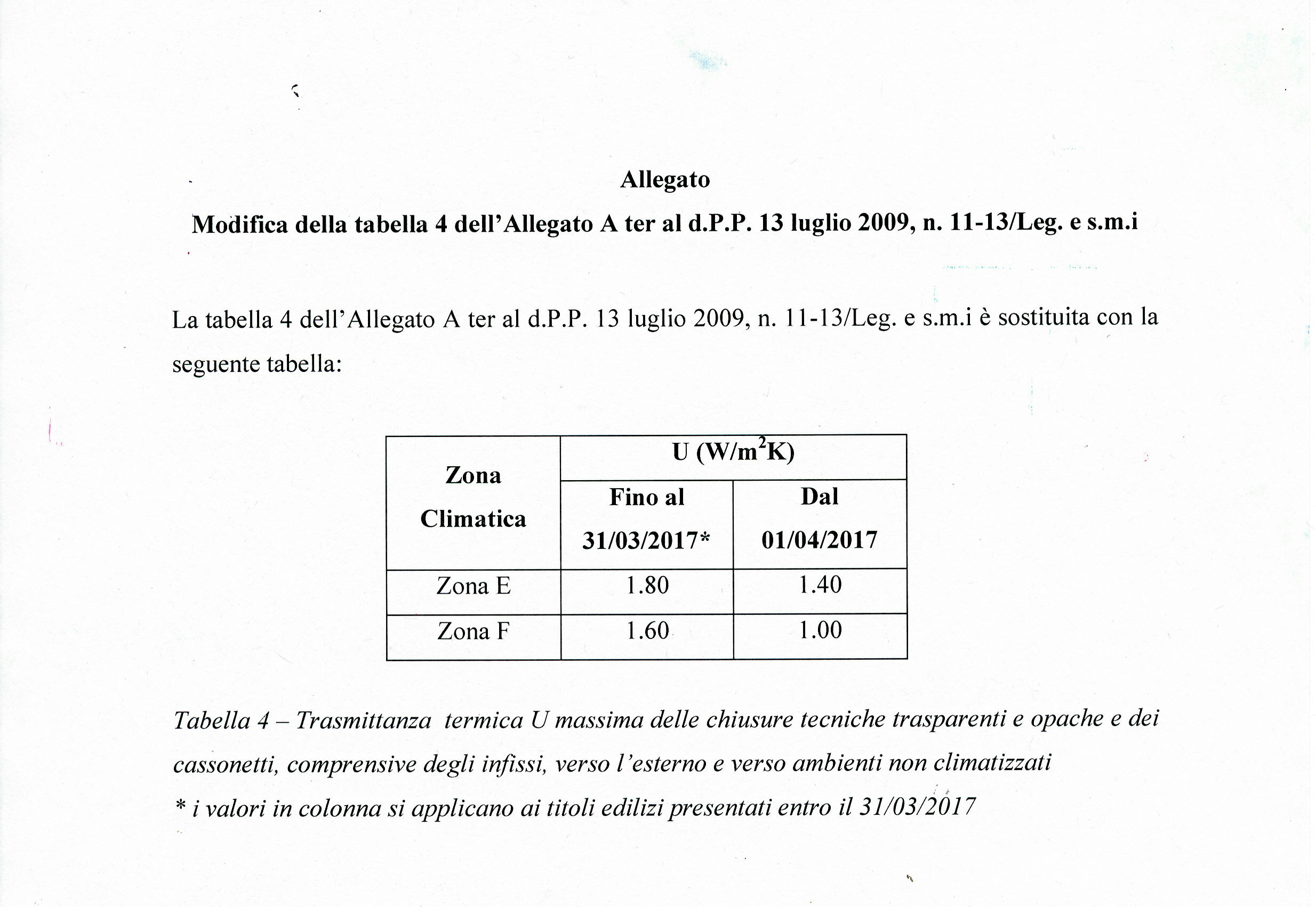 Comunichiamo che a partire dal 01/04/2017 i valori termici per le ZONE CLIMATICHE “E” ed “F” SOLO PER LA PROVINCIA DI TRENTO saranno modificati secondo lo schema sotto riportato: